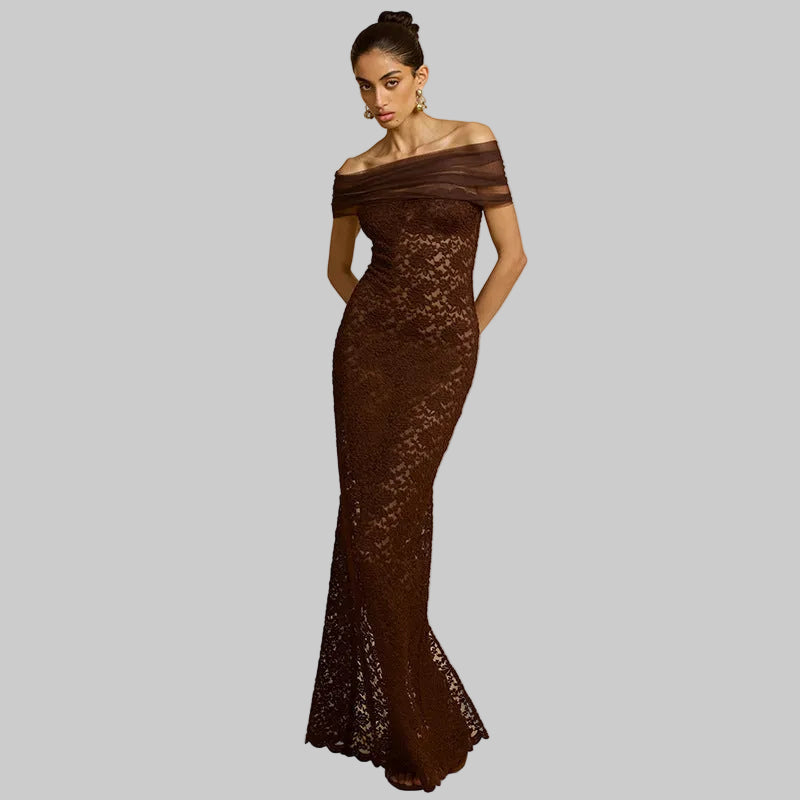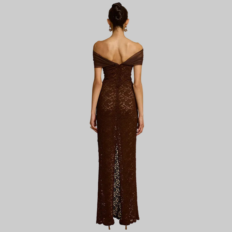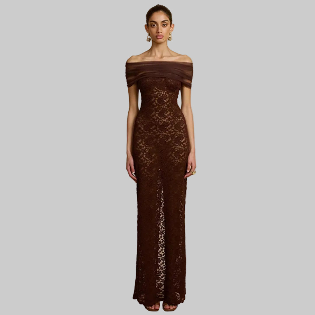 Deep chocolate brown, a regal figure-hugging silhouette, sophisticated details. THE QUEEN isn't just a dress, it's THE dress. The one that completes your collection. The one that says everything without saying a word.